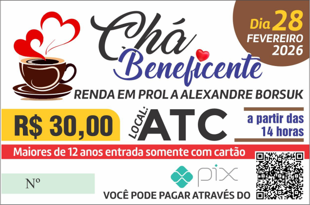 O evento está marcado para o dia 28 de fevereiro de 2026, a partir das 14h, no ATC. Os cartões estão sendo vendidos ao valor de R$ 30, com entrada permitida para maiores de 12 anos. O pagamento pode ser feito também por meio de Pix, conforme divulgado pelos organizadores na arte da campanha.